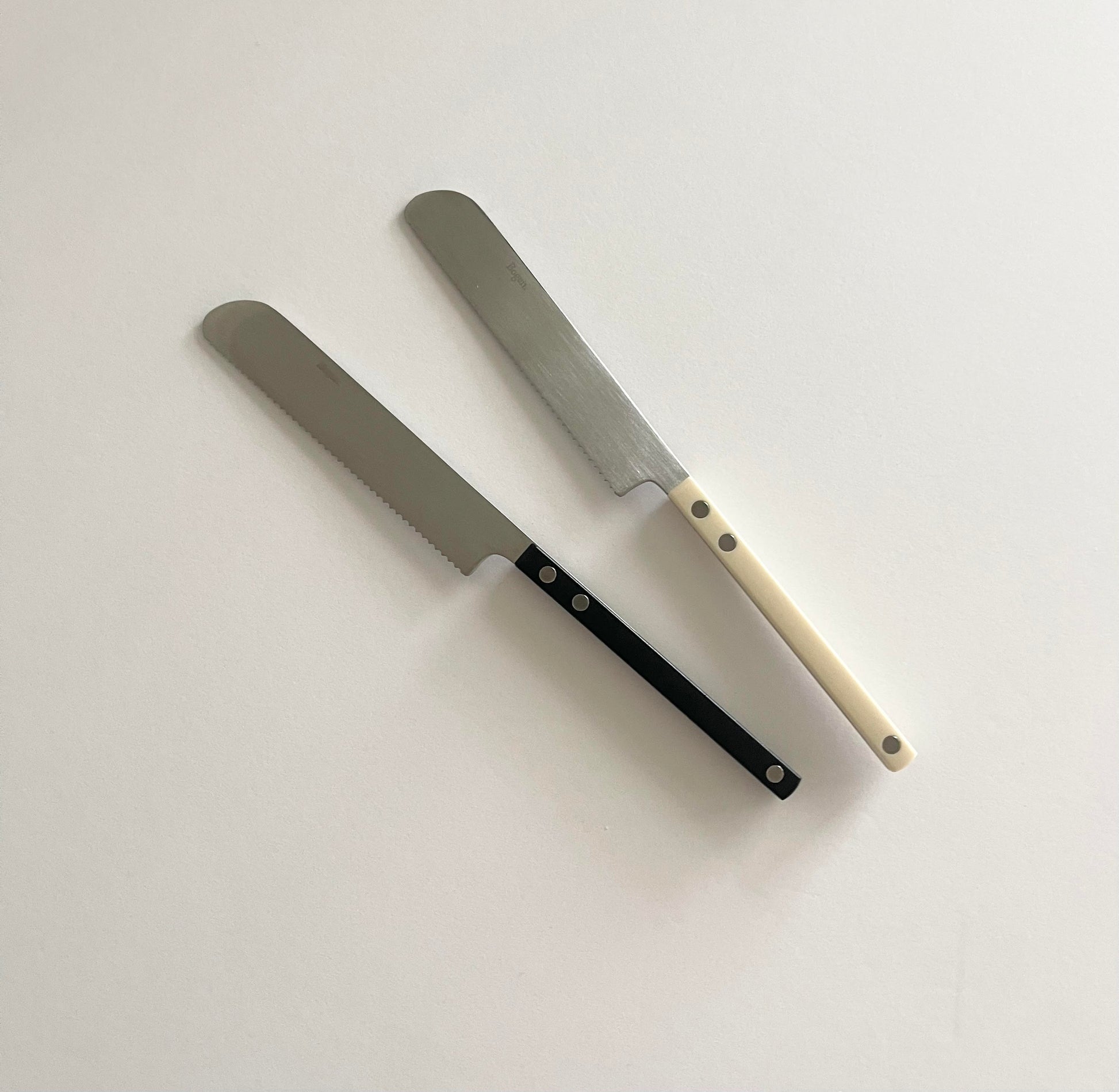 The dinner, bread, and cheese knives are made from SUS420J2 stainless steel, a tough material often used in tools and machine parts. It can be hardened with heat, making the knives durable and long-lasting. This set is a great addition to your Bogen series!